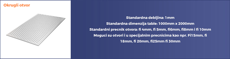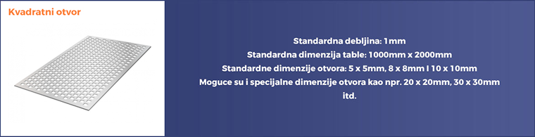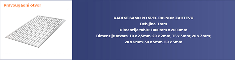 - Pravougaoni otvor – radi se samo po specijalnom zahtevu