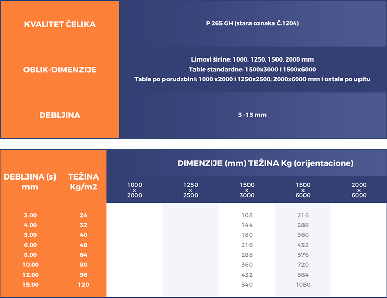 - TV kotlovski limovi – toplovaljani limovi za kotlove i sudove pod pritiskom, gde su pored mehaničkih važna i svojstva na temperaturi