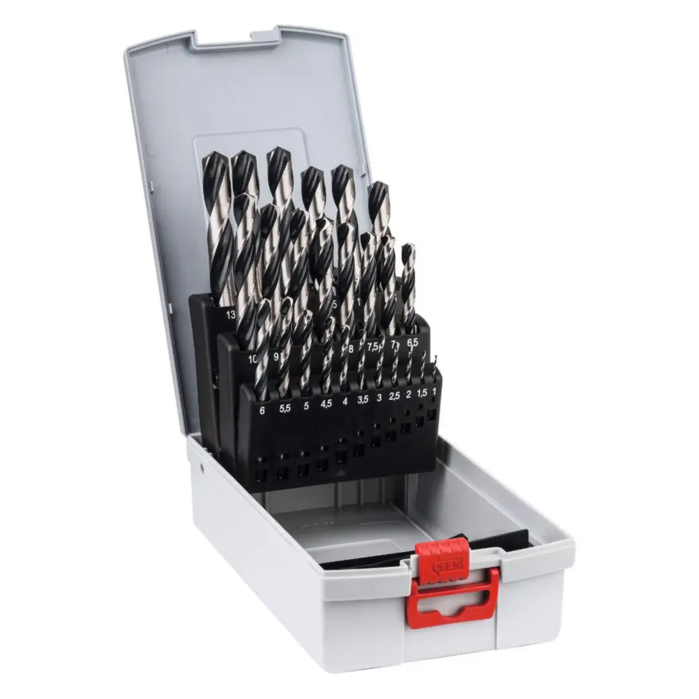 Spiralna burgija od brzoreznog čelika velike snage po normi DIN 338. Sa desnim sečenjem, tip N, 135° vrh burgije. Utični kraj odgovara prečniku burgije. Sa dve oštrice, dve spirale.